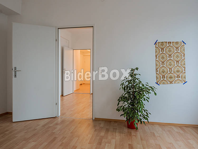 Beschreibung Neue Wohnung wurde mit einem Stück Tapete und einem Blumenstock verschönert. Symbolfoto für Umzug, Übersiedlung. Kein Geld für Möbel wegen hoher Mieten.