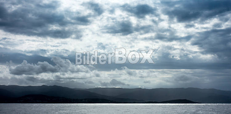 Beschreibung Düstere Wolkenstimmung mit Meer. Symbolbild für Düster, unheimlich und bedrohlich.