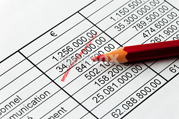 Zahlen einer Statistik mit Rotstift. Französisch.