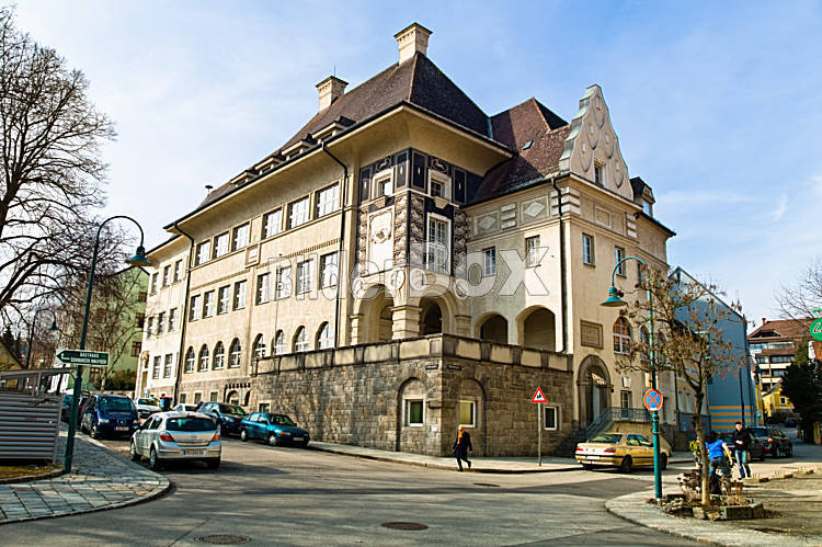 Beschreibung Ein altes Schulgebäude in Linz, Österreich.